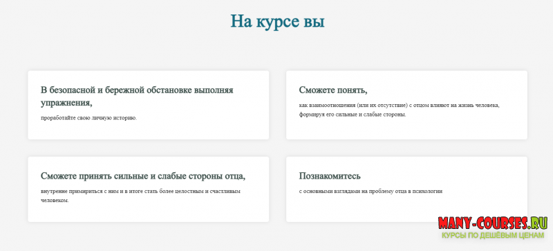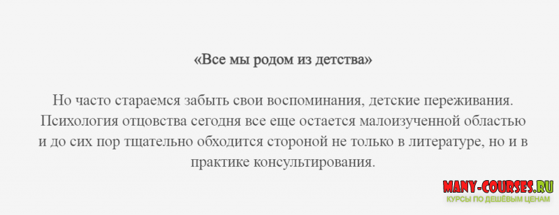 Именно о взаимоотношениях с отцом, об их влиянии на жизнь ребенка и пойдёт речь на курсе «Работа с образом отца» Ведь самые смелые и начинают эту сложную работу с воспоминаниями, благодаря чему обретут внутреннюю свободу и ресурс для новых свершений.