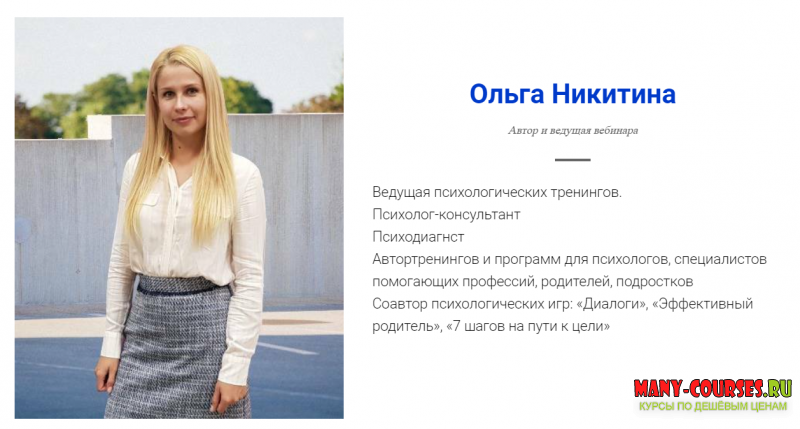 Автор курса: Ольга Никитина / World of Psychology Категория: Эзотерика и оккультизм Дата выхода: 2021 Продажник от автора: Перейти Цена у автора: 12000 P