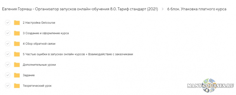 Вы находитесь на странице товара «Евгения Гормаш - Организатор запусков онлайн-обучения 8.0. Тариф стандарт», это материал 2021 года, который, мы надеемся, принесет вам пользу. Все курсы доступны по очень низкой цене, в отличии от оригинальной цены автора в размере 31990 рублей. Вы же получаете этот курс, купив в нашем магазине Coursx.net, с огромной скидкой, всего 400 рублей. На каждый курс Вы можете посмотреть оригинальный продажник, после чего принять решение о покупке. Обучающий курс входит в рубрику «Бизнес, менеджмент, продажи», спросом которой пользуется множество покупателей. В нашем магазине Вы найдёте ещё много курсов от автора «Евгения Гормаш», достаточно ввести в поиск имя автора.