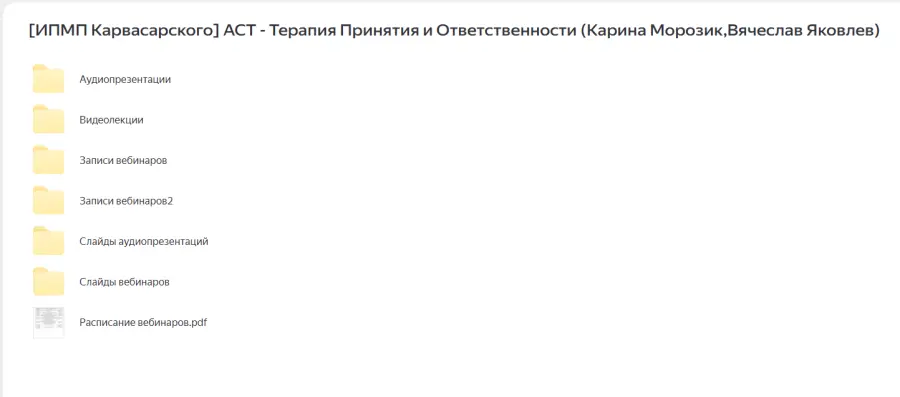 Вы находитесь на странице товара «ИПМП Карвасарского / Карина Морозик, Вячеслав Яковлев - ACT - Терапия Принятия и Ответственности», это материал года, который, мы надеемся, принесет вам пользу. Все курсы доступны по очень низкой цене, в отличии от оригинальной цены автора в размере рублей. Вы же получаете этот курс, купив в нашем магазине Coursx.net, с огромной скидкой, всего 290 рублей. На каждый курс Вы можете посмотреть оригинальный продажник, после чего принять решение о покупке. Обучающий курс входит в рубрику «Психология», спросом которой пользуется множество покупателей. В нашем магазине Вы найдёте ещё много курсов от автора «Карина Морозик, Вячеслав Яковлев», достаточно ввести в поиск имя автора.