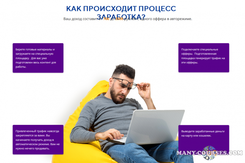 Берете готовые материалы и загружаете на специальную площадку. Для вас уже подготовлен весь контент для работы.