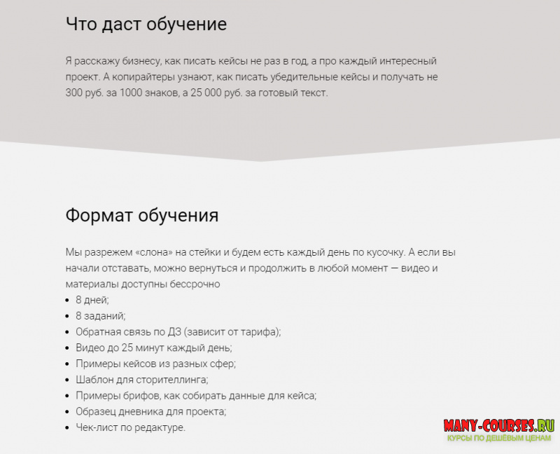 Я расскажу бизнесу, как писать кейсы не раз в год, а про каждый интересный проект. А копирайтеры узнают, как писать убедительные кейсы и получать не 300 руб. за 1000 знаков, а 25 000 руб. за готовый текст.