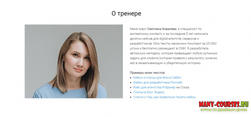 Меня зовут Светлана Ковалева, я специалист по экспертному контенту и за последние 5 лет написала десятки кейсов для digital-агентств, сервисов и разработчиков. Мои тексты заказчики покупают за 25 000/штука и бесплатно размещают в СМИ. Я разработала авторскую методику, которая превращает любую рутинную задачу для клиента (которая привела к результату, конечно же) в захватывающую и убедительную историю.