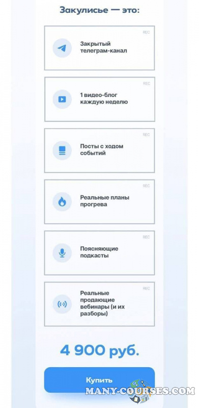 Вы находитесь на странице товара «Михаил Тимочко - Обучающее реалити шоу Закулисье», это материал 2022 года, который, мы надеемся, принесет вам пользу. Все курсы доступны по очень низкой цене, в отличии от оригинальной цены автора в размере 4900 рублей. Вы же получаете этот курс, купив в нашем магазине Coursx.net, с огромной скидкой, всего 490 рублей. На каждый курс Вы можете посмотреть оригинальный продажник, после чего принять решение о покупке. Обучающий курс входит в рубрику «Бизнес, менеджмент, продажи», спросом которой пользуется множество покупателей. В нашем магазине Вы найдёте ещё много курсов от автора «Михаил Тимочко», достаточно ввести в поиск имя автора.