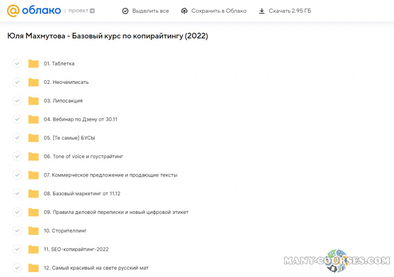 Вы находитесь на странице товара «Юля Махмутова - Базовый курс по копирайтингу», это материал 2022 года, который, мы надеемся, принесет вам пользу. Все курсы доступны по очень низкой цене, в отличии от оригинальной цены автора в размере рублей. Вы же получаете этот курс, купив в нашем магазине Coursx.net, с огромной скидкой, всего 349 рублей. На каждый курс Вы можете посмотреть оригинальный продажник, после чего принять решение о покупке. Обучающий курс входит в рубрику «Саморазвитие и мотивация», спросом которой пользуется множество покупателей. В нашем магазине Вы найдёте ещё много курсов от автора «Юля Махмутова», достаточно ввести в поиск имя автора.