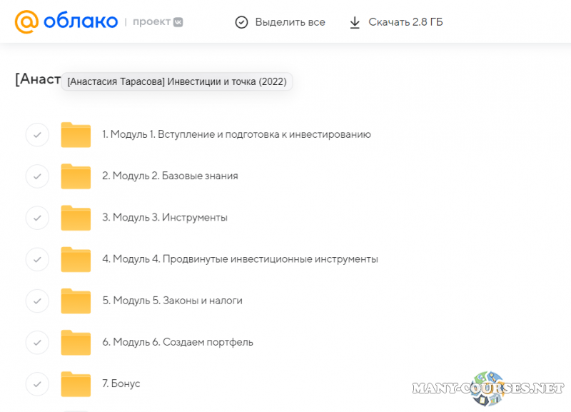 Ольга Гогаладзе - Я - Инвестор 2.0Настя Pixy - Академия запусков 7.0. Последний поток. Тариф Премиум (2023)Пётр Александров / WPnew - Продвижение сайтов в яндексе и google от А до ЯНастя Pixy - Академия запусков 5.0. Тариф VIPВасилий Жданов, Иван Жданов / Школа финансов и инвестиций - Инвестиционные портфели гуру. Доходность 290% (2021)