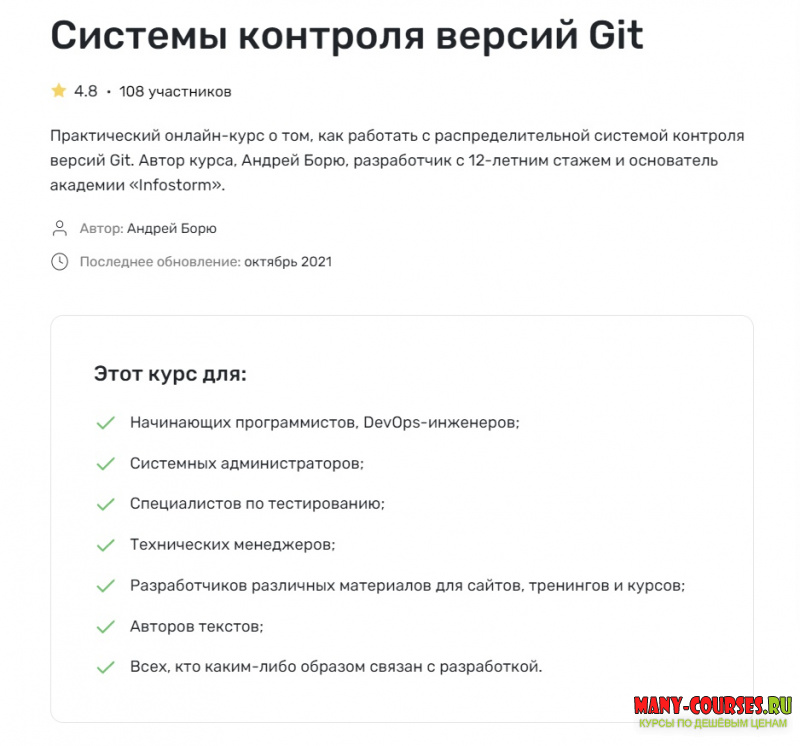 Вы находитесь на странице товара «Edston / Андрей Борю - Системы контроля версий Git», это материал 2021 года, который, мы надеемся, принесет вам пользу. Все курсы доступны по очень низкой цене, в отличии от оригинальной цены автора в размере 999 рублей. Вы же получаете этот курс, купив в нашем магазине Coursx.net, с огромной скидкой, всего 70 рублей. На каждый курс Вы можете посмотреть оригинальный продажник, после чего принять решение о покупке. Обучающий курс входит в рубрику «Программирование», спросом которой пользуется множество покупателей. В нашем магазине Вы найдёте ещё много курсов от автора «Edston / Андрей Борю», достаточно ввести в поиск имя автора.