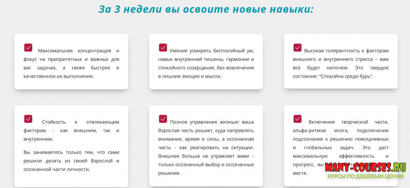 ►После этого модуля вы обретете устойчивость к стрессу и спокойный ум, через негативную работу которого раньше утекала ваша энергия и мотивация.
