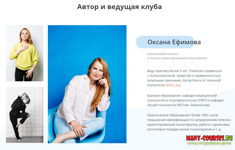 Вы находитесь на странице товара «Оксана Ефимова - Клуб телесной психологии Ноябрь (2021)», это материал 2021 года, который, мы надеемся, принесет вам пользу. Все курсы доступны по очень низкой цене, в отличии от оригинальной цены автора в размере 990 рублей. Вы же получаете этот курс, купив в нашем магазине Coursx.net, с огромной скидкой, всего рублей. На каждый курс Вы можете посмотреть оригинальный продажник, после чего принять решение о покупке. Обучающий курс входит в рубрику «Эзотерика и оккультизм / Психология / Скоро», спросом которой пользуется множество покупателей. В нашем магазине Вы найдёте ещё много курсов от автора «Оксана Ефимова», достаточно ввести в поиск имя автора.