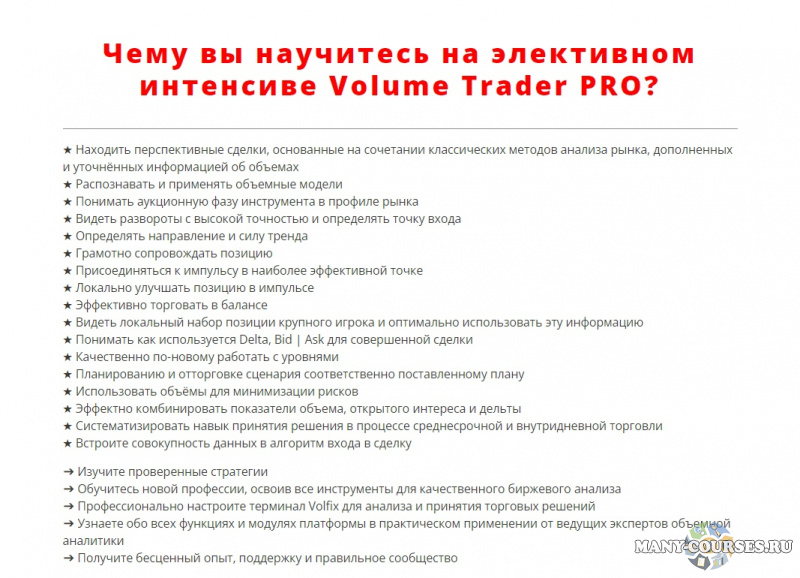 Чему вы научитесь на элективном интенсиве Volume Trader PRO?