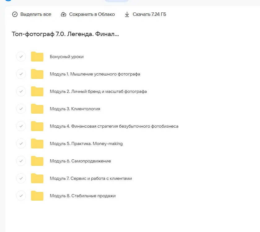 Вы находитесь на странице товара «Марина Яровая - Топ-фотограф 7.0. Легенда. Финал. Тариф С наставником», это материал года, который, мы надеемся, принесет вам пользу. Все курсы доступны по очень низкой цене, в отличии от оригинальной цены автора в размере 119900 рублей. Вы же получаете этот курс, купив в нашем магазине Coursx.net, с огромной скидкой, всего 1100 рублей. На каждый курс Вы можете посмотреть оригинальный продажник, после чего принять решение о покупке. Обучающий курс входит в рубрику «Видео и фото», спросом которой пользуется множество покупателей. В нашем магазине Вы найдёте ещё много курсов от автора «Марина Яровая», достаточно ввести в поиск имя автора.