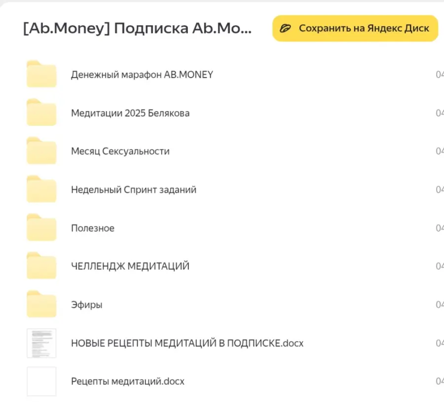 77 медитаций» от Aлeкcaндpы Бeлякoвoй. Тариф на богатом (2023)Гульнара Вахитова - Дизайн одеждыАлександра Яблокова - Стихия твоего состояния. Тариф — Хочу все медитацииAB.Money / Александра Белякова. Апрель 2023. Тариф - На богатомЕкатерина Тохтарова - Психосоматика в жизни. Тариф Мастер продаж. 4 поток