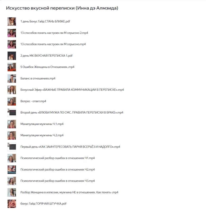 Rezepov / Рустам Резепов - Продвинутый курс по переписке. Тариф Стандарт (2024)Светлана Керимова - Высший пилотаж в отношениях. VIP курсИнна Тлиашинова - Денежная сексуальность. Новогодний Бокс – Все Включено (2023)Ladies School / Инна дэ Алмэида - Женщина влюбленная в жизньNS TV / Никита Мартынов - Знакомства в сети (2020)