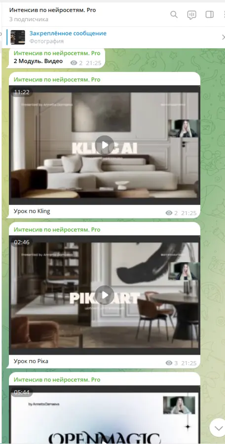 Егор Апполонов - Курс ИИ КИНО 2.0. Тариф БазовыйДамир Халилов - AI-профессионал 4.0. Пакет Premium (2025)AIronzak - НейроSet 2.0. Тариф Оба модуля + курс по набору аудиторииЛена Драгина - Полный курс по обработке, цветокору и ретуши. С кураторомАнтон Богатушин - Приручение ИИ. Тариф Приручение ИИ (2025)