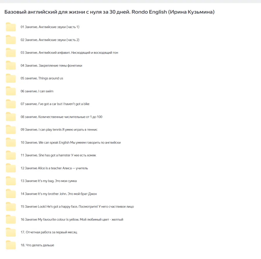 Ирина Мовсесян - Английский язык. Тариф Все включеноСтанислав Матвеев - Суперпамять на 100%. Авторский курс от рекордсмена России по запоминаниюИрина Кузьмина - Rondo English первый шаг. Премиум участиеАлексей Корзун - Деньги с Telegram-блогаСергей Че - Speakingizer. Для тех, кому нужно заговорить по-английски за 4 месяца. Gold