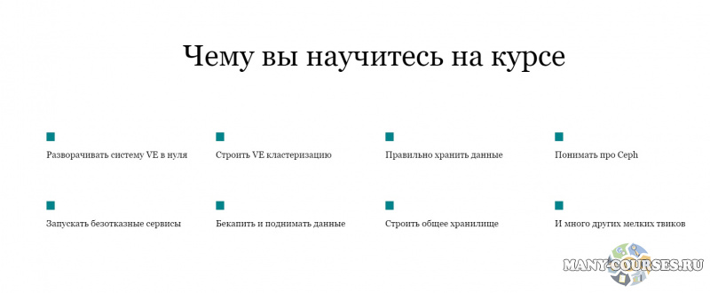Досконально разберем основы Ceph (поговорим про мониторы, менеджеры и OSD), варианты его установки, развернем его поверх нашего Proxmox-кластера. Рассмотрим сценарии использования и кейсы по обслуживанию