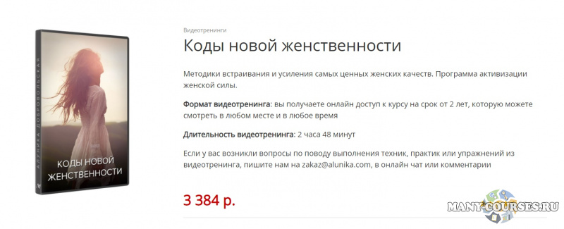 Этот видеотренинг даёт женщинам проверенные опытом формулы и стратегии женственности, которые помогут карьеристкам и просто занятым женщинам не терять доступ к своей женской природе и всегда оставаться желанными и притягательными для мужчин. Он создан на основе многолетнего опыта автора в консультировании успешных женщин, у которых получилось совмещать красивую мягкую женственность и семью с результативными достижениями в работе и бизнесе.