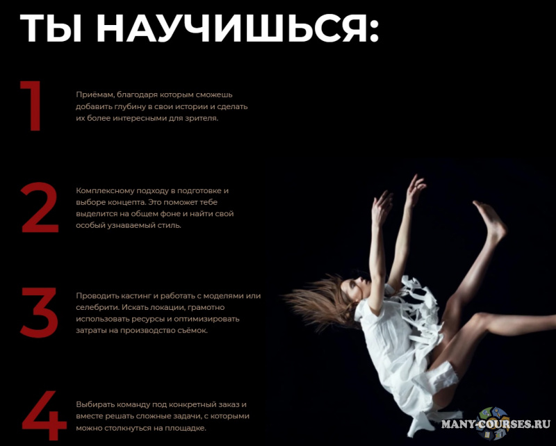 В каждом уроке я буду подробно разбирать свои съёмки и на личном примере расскажу как использовал тот или иной приём. После прохождения этого курса, у вас будет чёткое понимание о работе с разными видами съёмок и будет возможность подумать над тем, что вы можете изменить для того чтобы найти свой уникальный стиль.