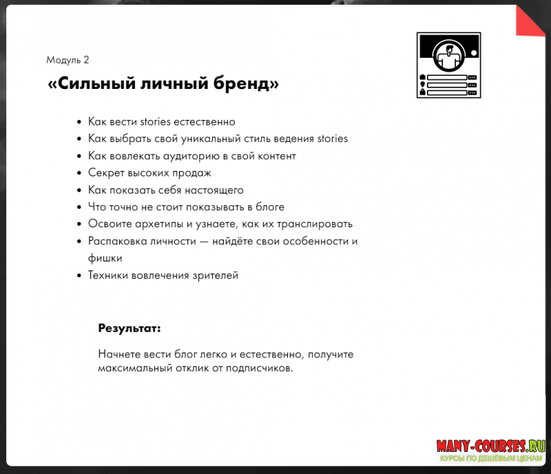 Вы научитесь подсвечивать свои жизненные ценности, транслировать экспертность через личные истории, повышать охваты и увеличивать продажи, не думая об алгоритмах соцсети.