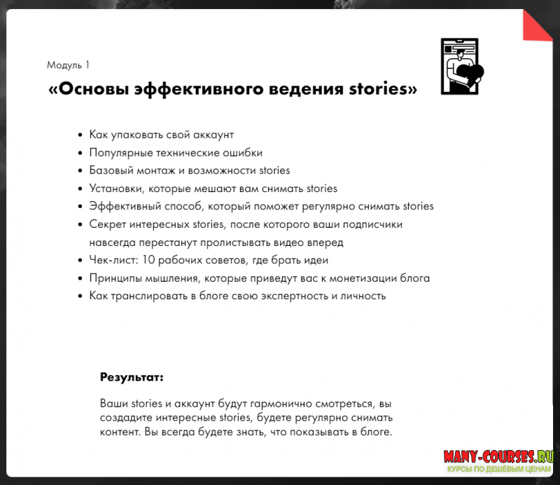 Вы станете уверенными в себе, кардинально поменяете мышление, избавитесь от страха снимать stories и научитесь делать это легко и в кайф.