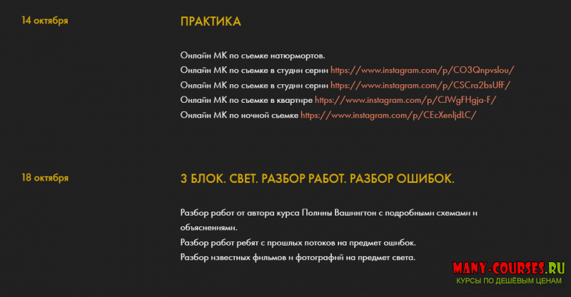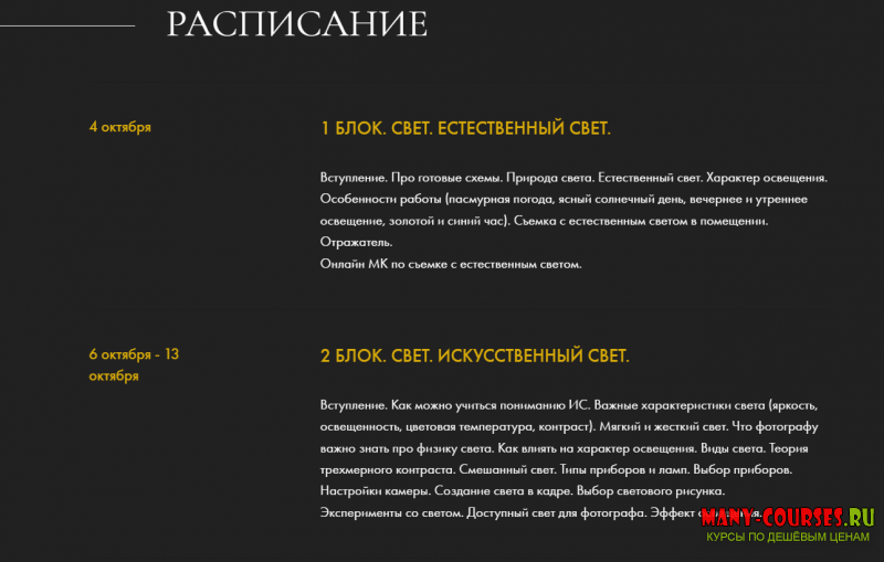 Вы будете учиться видеть и понимать свет, а не заучивать готовые схемы. Благодаря этому вы сможете создавать интересные фотографии в любых условиях и с любым доступным световым оборудованием (даже с бытовыми приборами). В курсе будет предоставлено большое количество разборов света и цвета на примере кино и фотографий - это поможет вам еще лучше разобраться в теме.