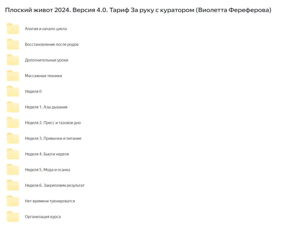 Виолетта Фереферова - Плоский живот 2024. Версия 4.0. Тариф За руку с куратором