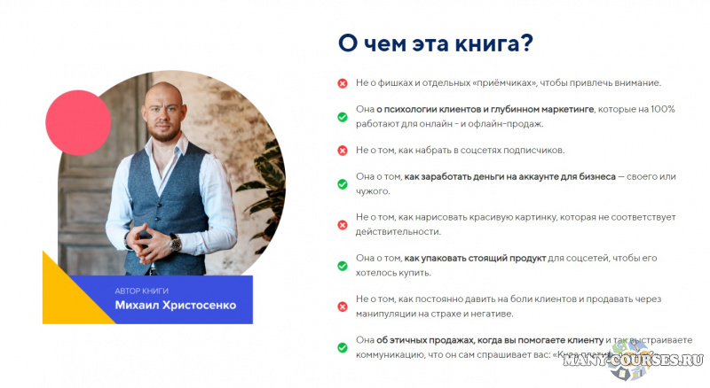Автор курса: Михаил Христосенко Категория: Бизнес, менеджмент, продажи / Схемы заработка Дата выхода: 2021 Продажник от автора: Перейти Цена у автора: 3490 P