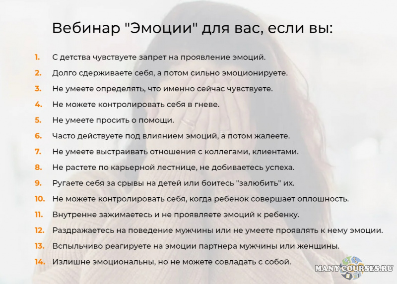 - Вебинар «Эмоции» - это настоящий план по развитию эмоционального интеллекта. Если вы хотите понимать свои чувства, справляться с любыми эмоциями, принимать навыки своих детей и развить в себе навыки самоконтроля, обязательно жду вас среди участников