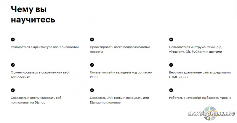HTML Academy - JavaScript. Профессиональная разработка веб-интерфейсов. Уровень 1 [Обновлённый поток, ES6]Skills Factory - Профессия разработчик Python. С нуля до профи (2021)Skillbox - Онлайн-курс «Веб-вёрстка» (2020)FructCode / Курс по HTML/CSS - Интерактивный курс создания сайтов HTML и CSS с нуля (2020)Nick Sereda / Udemy - Разработка приложений с Flutter 2.0 и Dart для IOS и Android