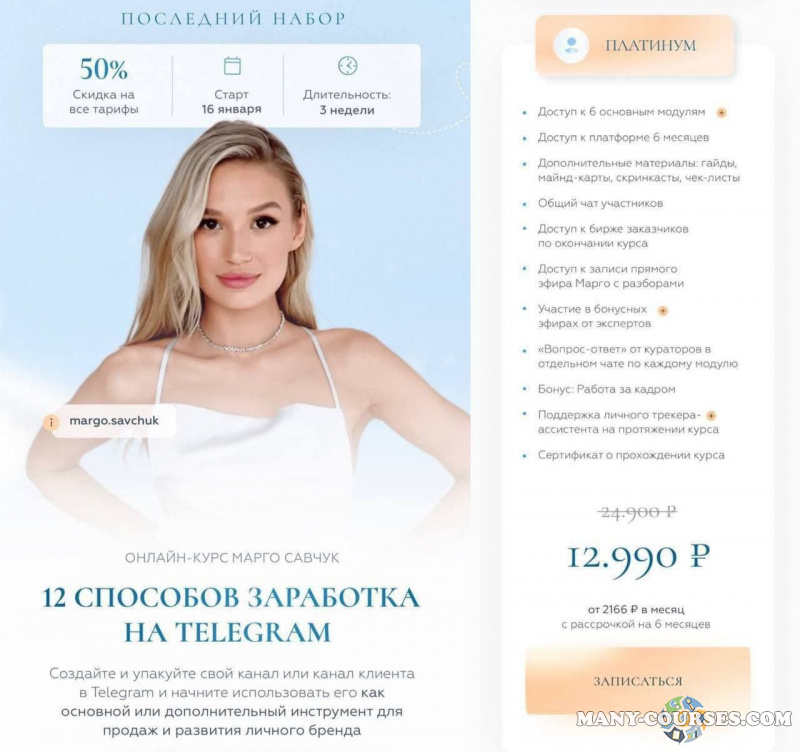 Марго Савчук - 12 способов заработка в Telegram. Тариф Платинум
